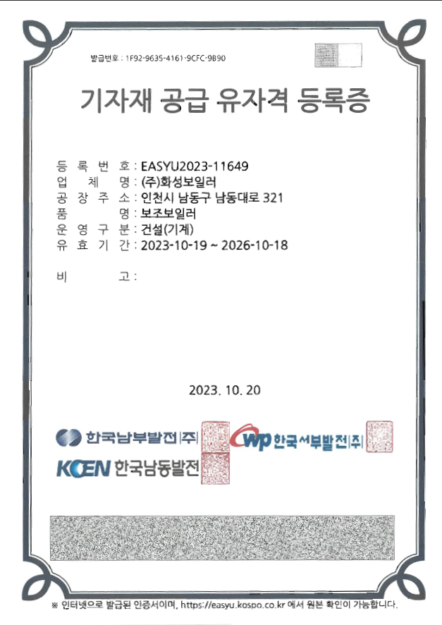 인허가증 기자재 공급 유자격 등록증 작성자 관리자 작성일 2021-07-28 01:53 조회 640 좋아요 0 싫어요 0 인쇄 공장등록증 » 목록보기 답글쓰기 Powered by KBoard