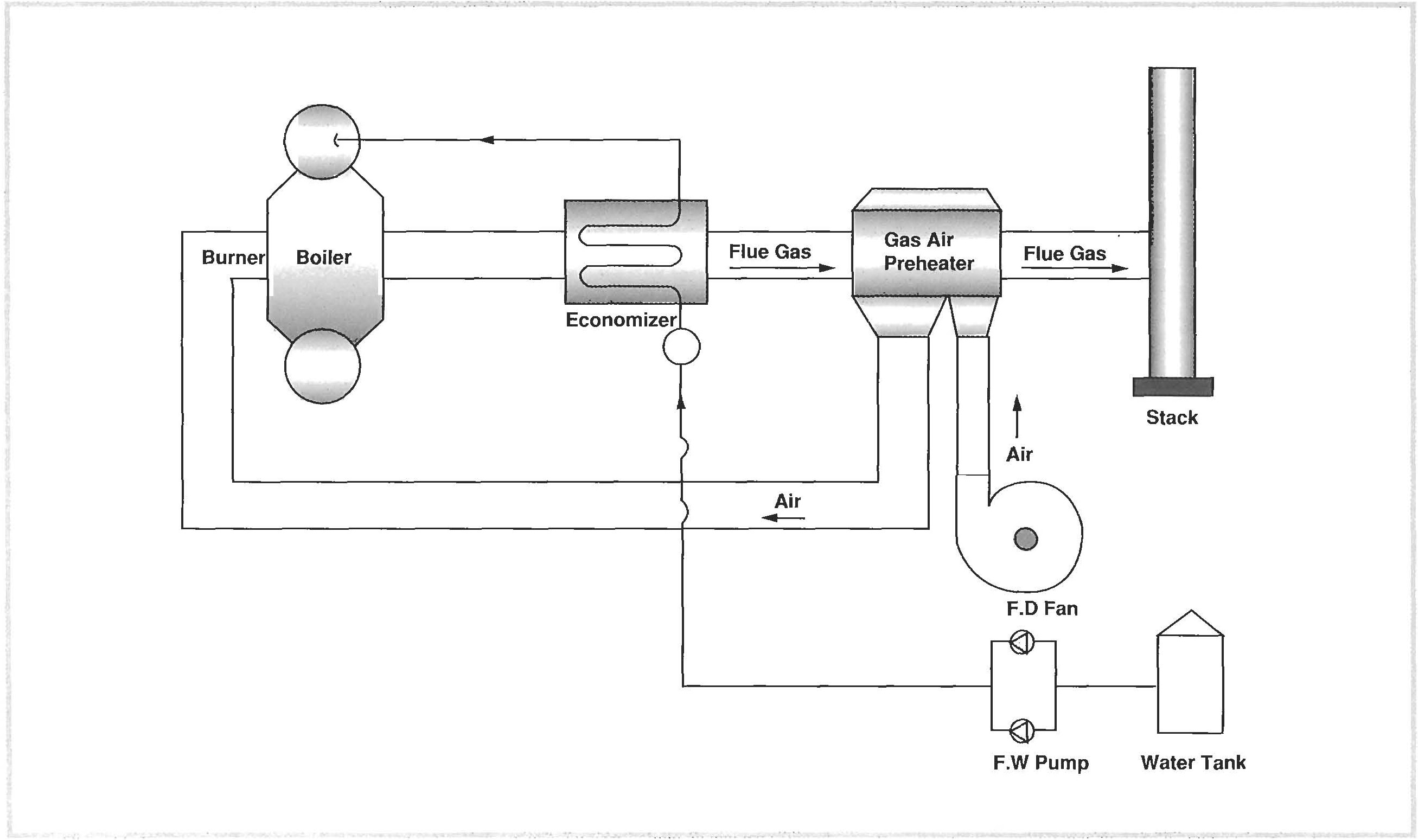 Utilizes waste heat by transferring heat from flue gases to warm incoming feedwater.